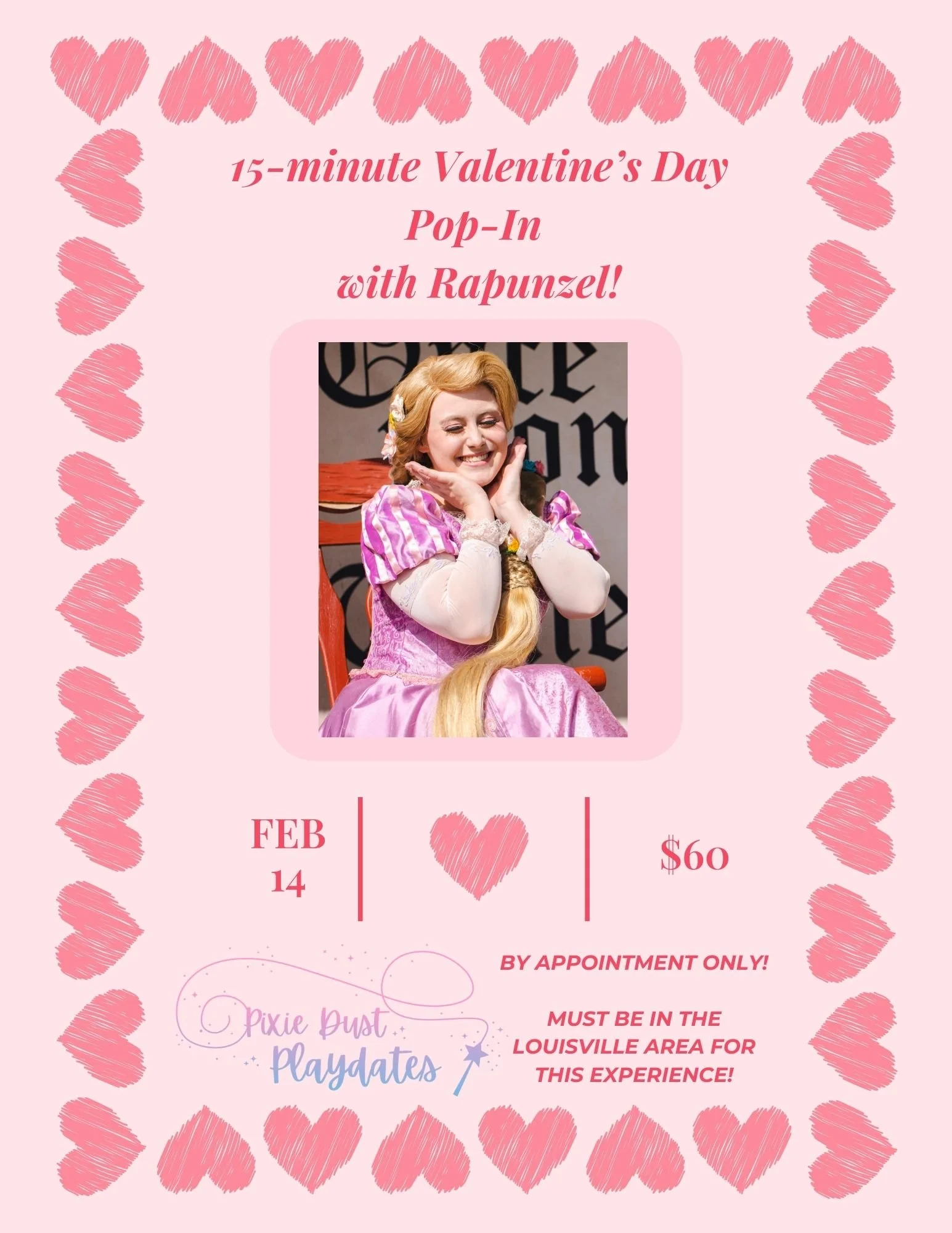 👉 Join the waiting list today, and our owner will personally reach out to see if we can fit your family into Rapunzel’s busy Valentine’s Day schedule.